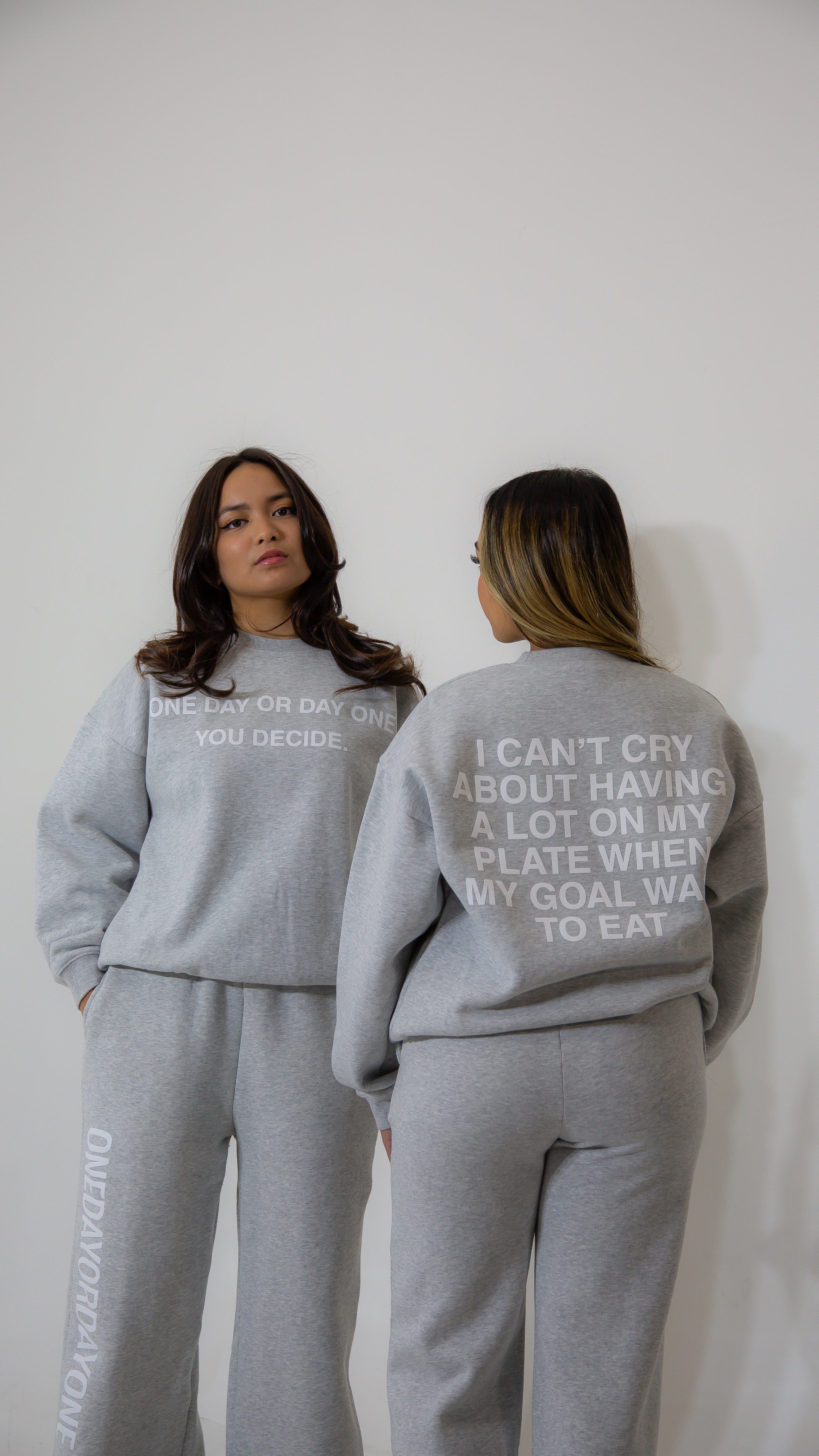 The Goal Was To Eat Crewneck is for the ones who asked for more and meant it. The ones balancing work, goals, stress, and responsibilities while still showing up. This heather grey heavyweight crewneck blends clean streetwear with a quote that hits the second you read it.