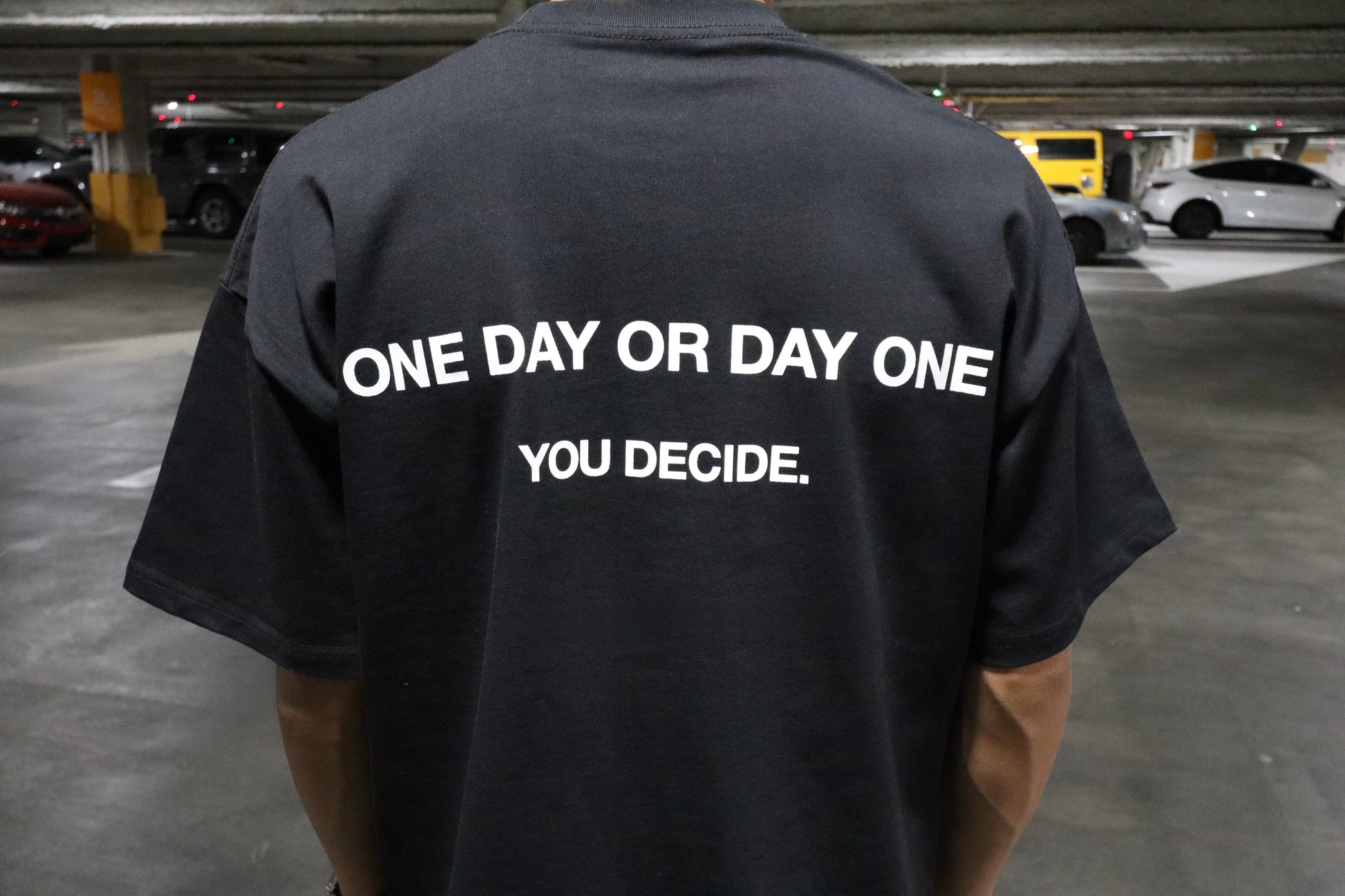 Want to see more ways to style this tee? Check out our socials for exclusive content and looks. @onedayordayoneco