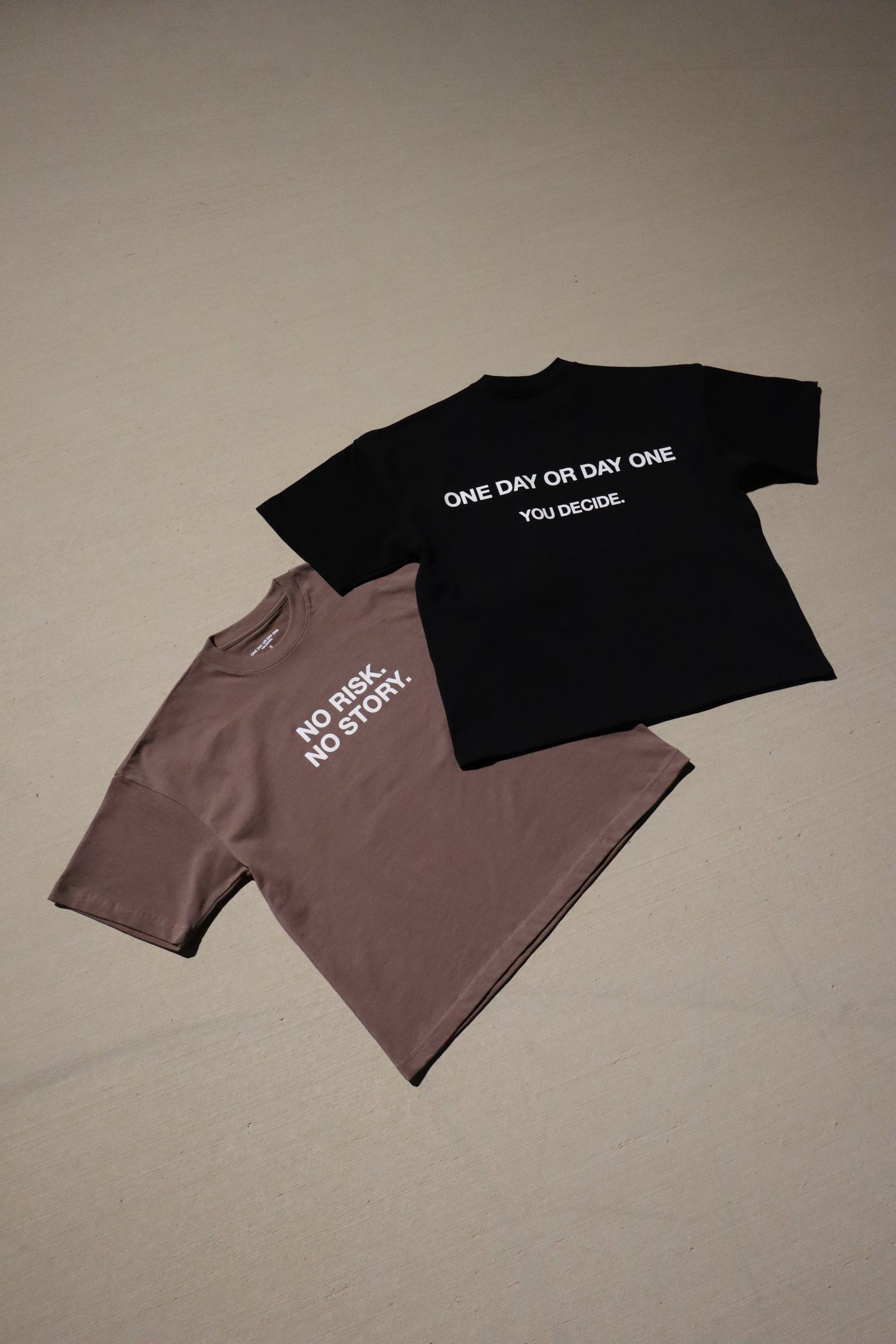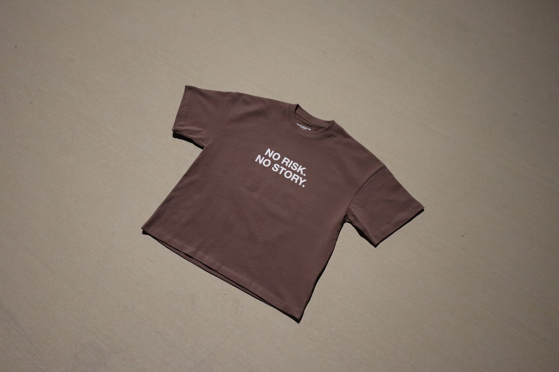 Bold in message, subtle in tone. The Clay No Risk No Story tee proves that playing it safe never made history. With crisp white lettering on a warm clay base, it’s built for those who step outside comfort zones and chase something greater. Soft, durable, and easy to style — it’s more than a tee, it’s a mindset.